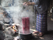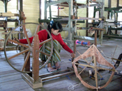 そこから複数のNGOや民間有志者達の「続き」がスタートしました。ミャンマーと同じように織物産業が盛んな、タイ、ラオス、カンボジアでは生産ラインにのせられない手紡ぎ、草木染め、シルク100%の製品を作り出すことが出来るようになりました。 |