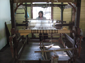 サウンダー国立織物学校は、イギリスの植民地時代に英国人のサウンダーによって設立されました。ごく最近まで世界的に主流となった化学染料に押され、植物染料はほとんど衰退していました。JETRO(日本貿易振興会)などの支援を受け、その原料となる植物や樹木を植えるところからスタートし、数年前から漸く収穫可能となり、同時に草木染めも復活しました。軌道にのるかに見えた矢先、アウン・サン・スー・チーさんの問題でアメリカがミャンマーに対し経済制裁を始めました。日本もそれに追従し、支援は半ばでストップとなってしまいました。